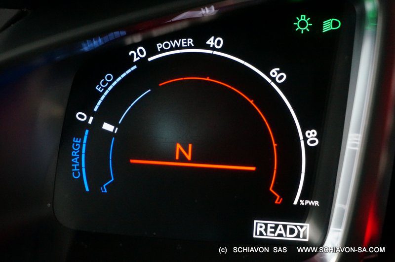 Appuyez sur le bouton de démarrage et vivez l'expérience est comme dans une hybride Toyota : silencieux, parce que l'Hybrid4 peut aussi fonctionner uniquement à l'électricité. Si les batteries sont complètement chargées, le DS5 peut couvrir jusqu'à 4 km à 60 km/h. Il y a des chances que la DS5 passe de ce mode zéro émission en mode 'auto' beaucoup plus tôt, avec le moteur diesel entrant en action. Ce gargouillis du moteur à combustion remplace la cacophonie lamentable des boites automatiques CVT des hybrides de Toyota. Le son est beaucoup moins intrusif. Le passage des deux sources d'alimentation est complètement lissé, et la DS5 passe automatiquement à la traction électrique si le rythme de circulation urbaine diminue suffisamment.